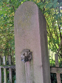 Die Säule ist mit einem Bronzespeier ausgestattet.